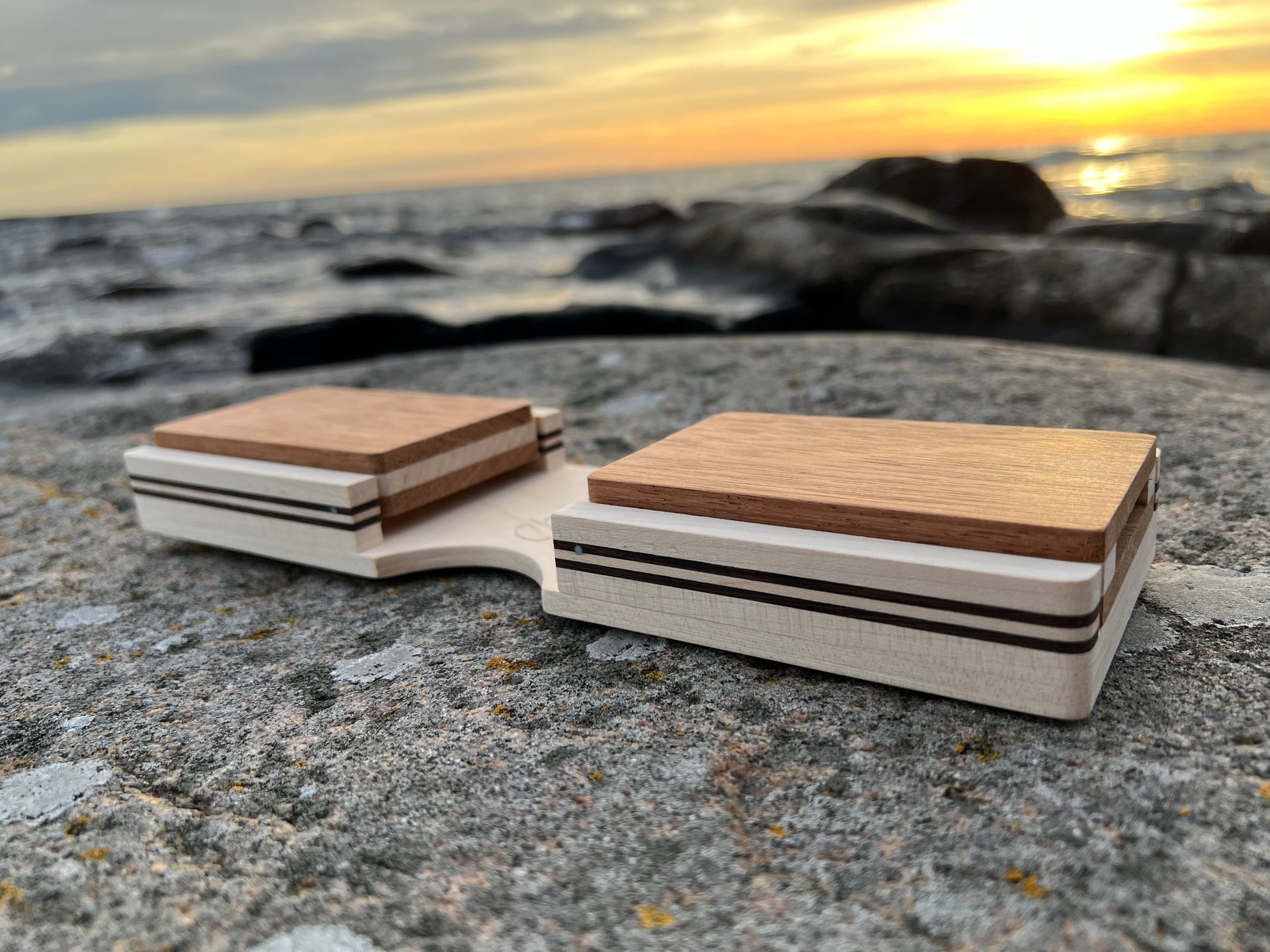 • Zwei Wenge-Module als Halterungen für Shaker, Seedshaker, Glöckchen oder Schellen